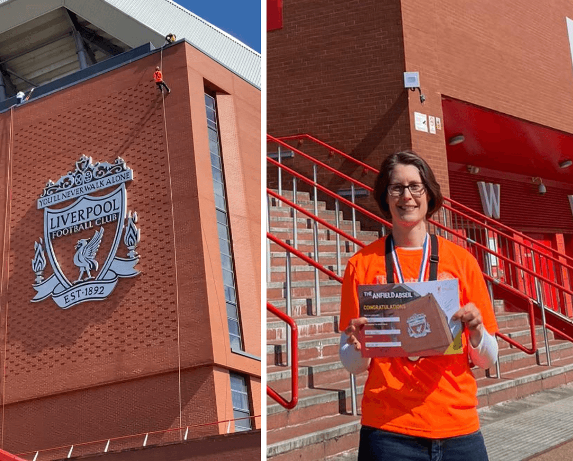 Over 50 people volunteered to abseil down the 100ft height of the Main Stand of Anfield Stadium in Liverpool last Sunday, organised by SYNGAP1 UK.