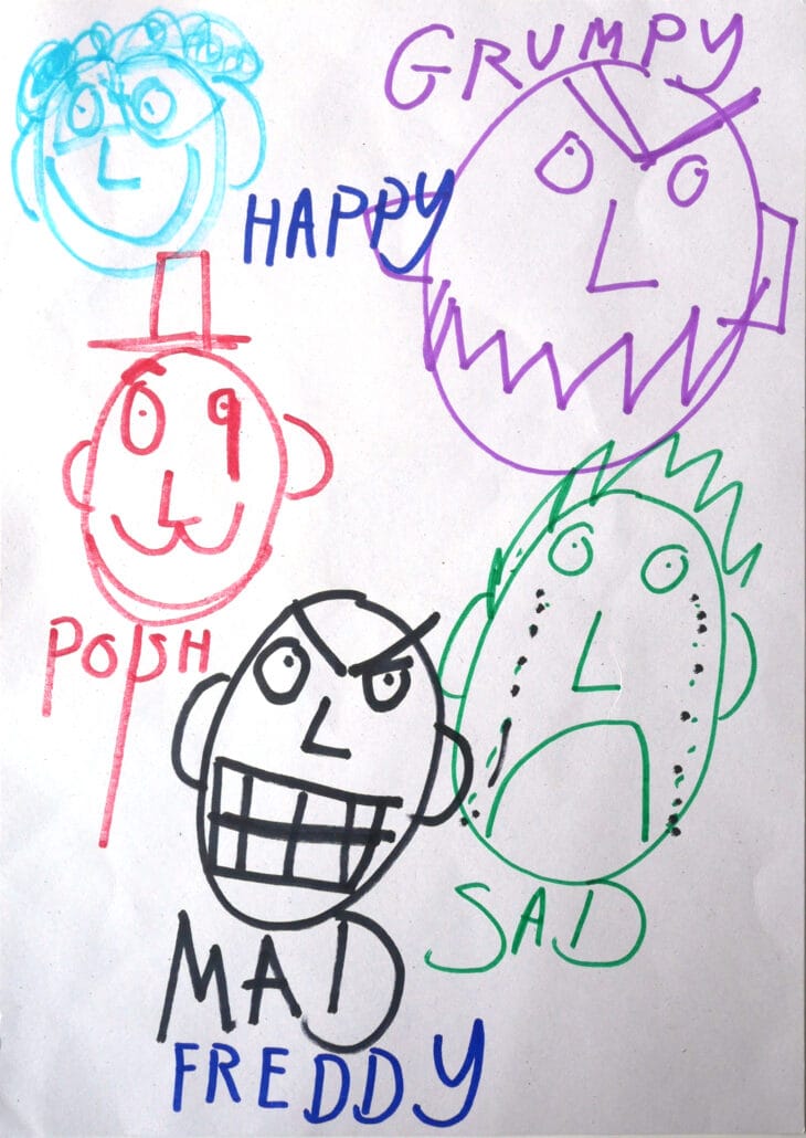 Freddy cannot always express how he feels but he has drawn some of the emotions he does understand.