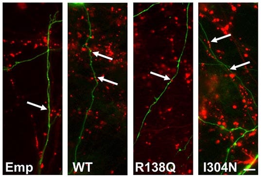 Figure shows that ADBE is activated later in neurons that have had the Fmr1 gene knocked-out (bottom row, 3rd image along at DIV 14, days in vitro) compared to typical or ‘wild type’ neurons (top row, 3rd image along)
